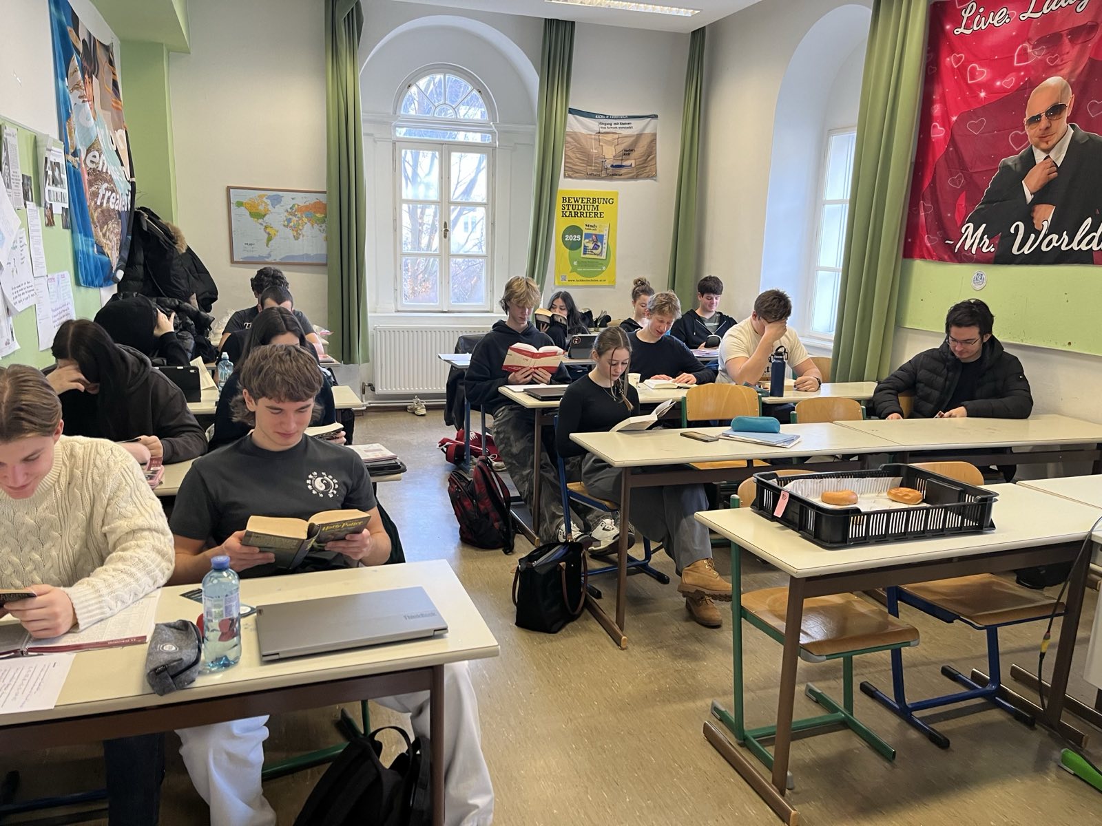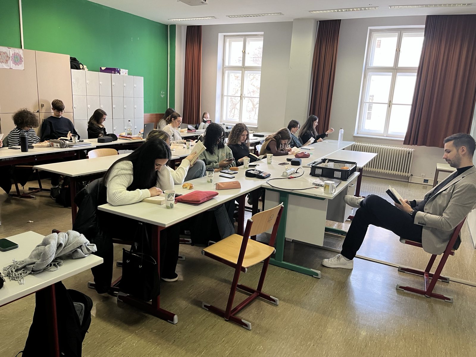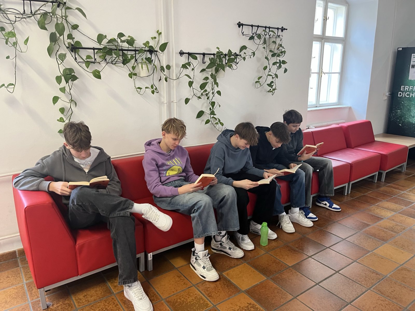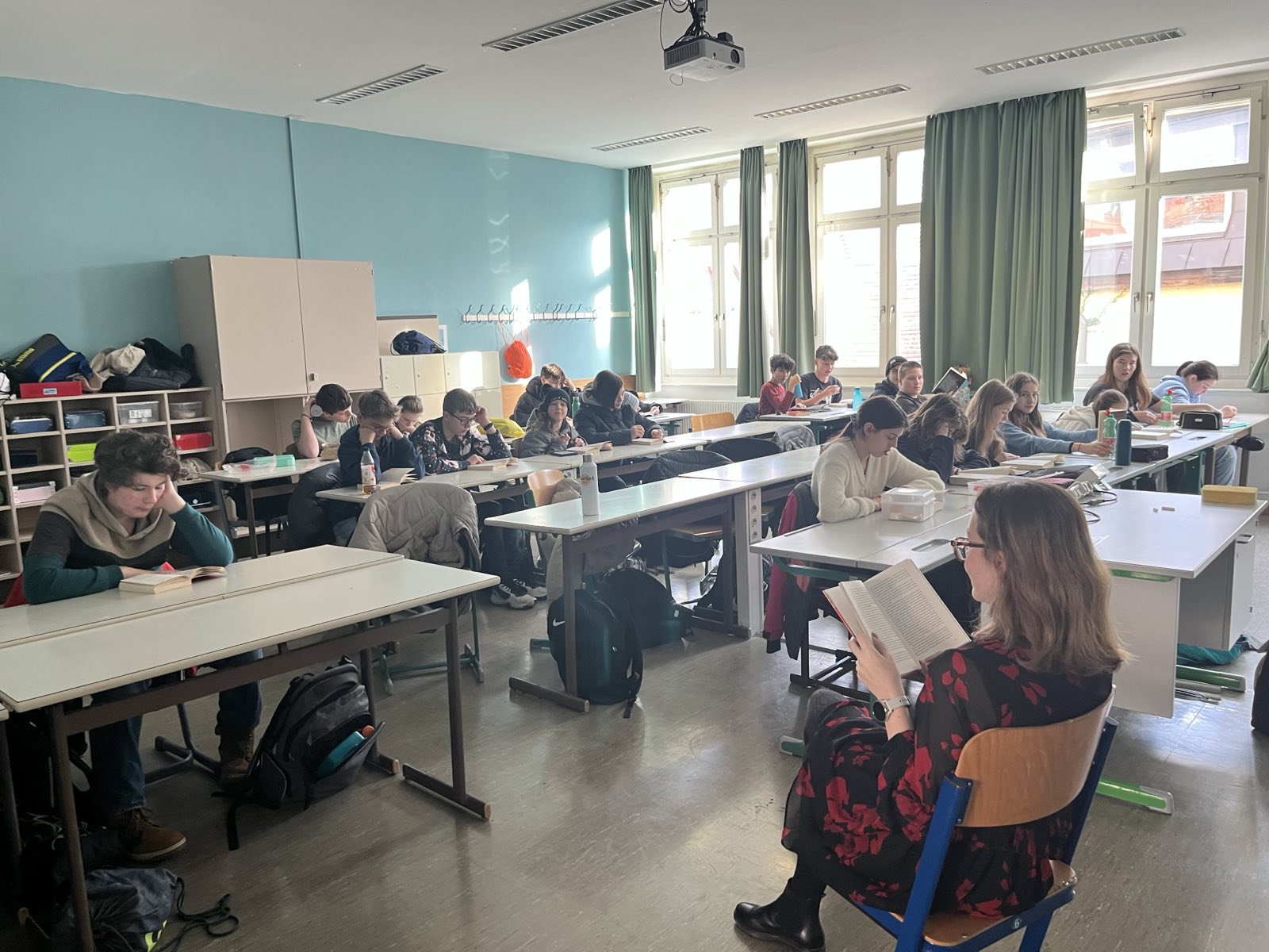 Alle Schulklassen nutzten die dritte Stunde dafür, um in ein mitgebrachtes Buch einzutauchen und gemeinsam die Atmosphäre des Lesens zu genießen. Einige Vergessliche flitzten noch schnell in die Schulbibliothek, um ein „Last-Minute-Buch“ auszuborgen.