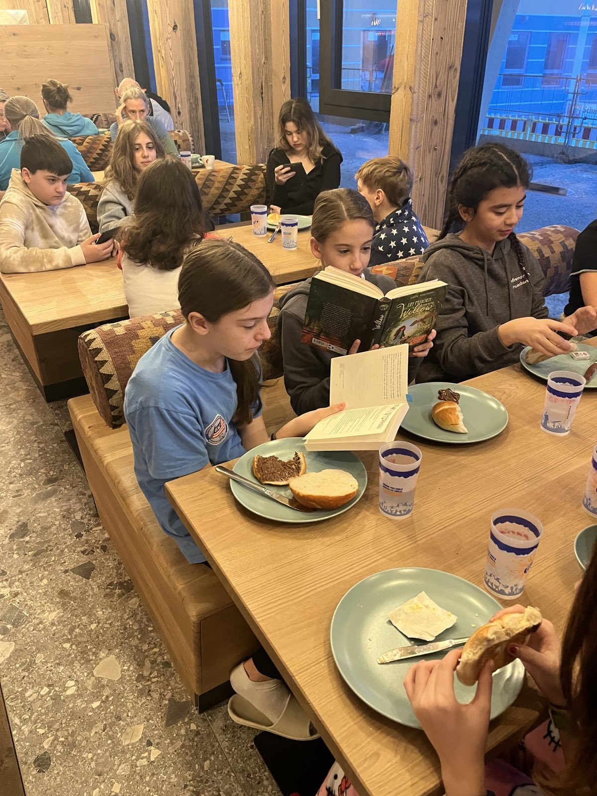 Und wenn die ganze Schule liest, dann darf man auch nicht auf die 3. Klassen vergessen, die sogar im Lift, auf der Piste und beim Frühstück am Schikurs begeistert gelesen haben.